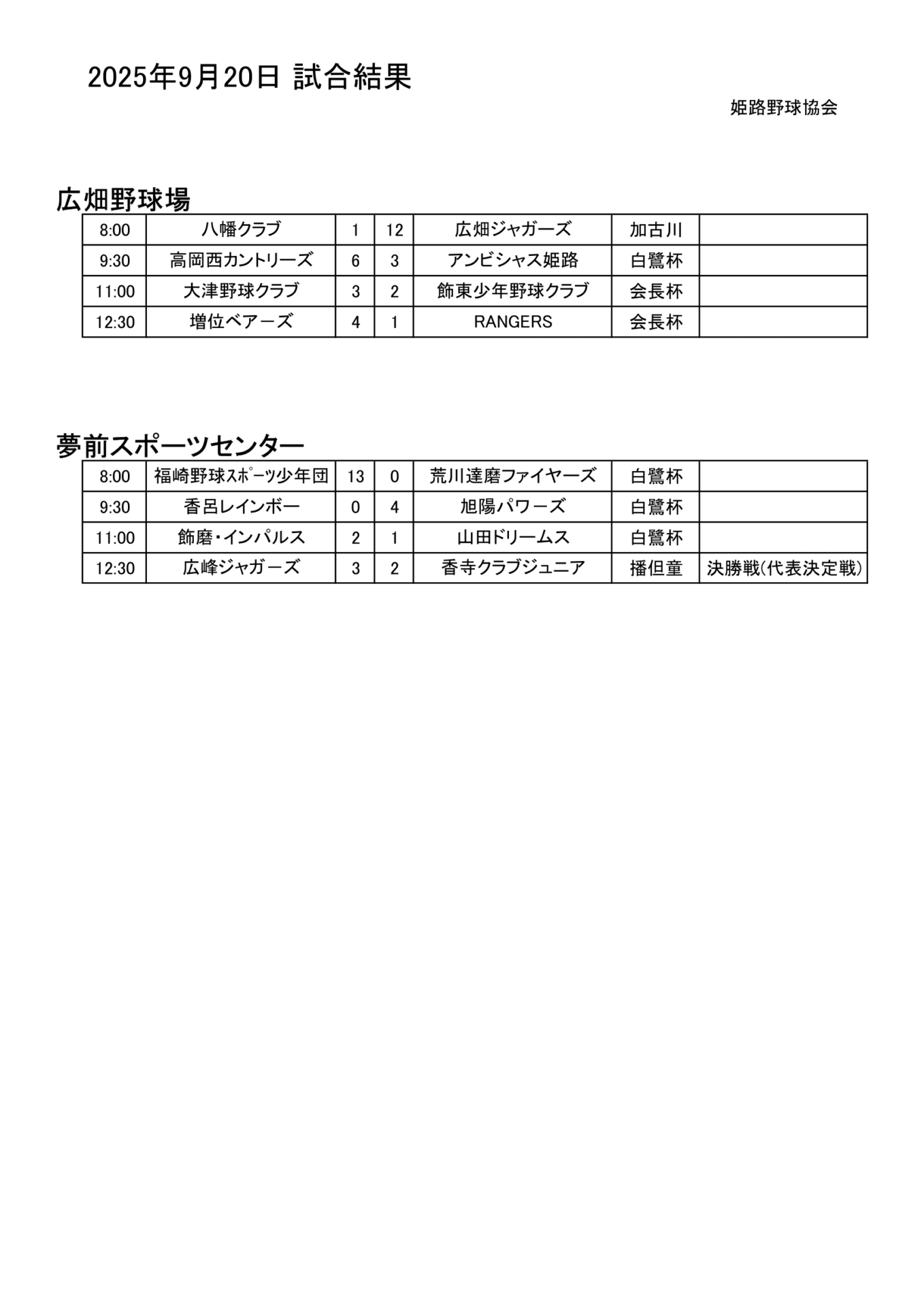 姫路野球協会は、全日本軟式野球連盟に所属する野球協会です。