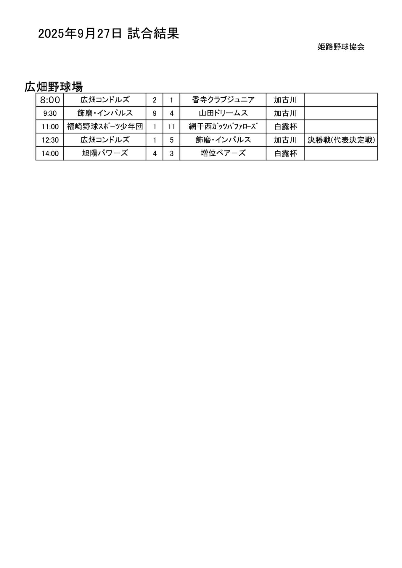 姫路野球協会は、全日本軟式野球連盟に所属する野球協会です。