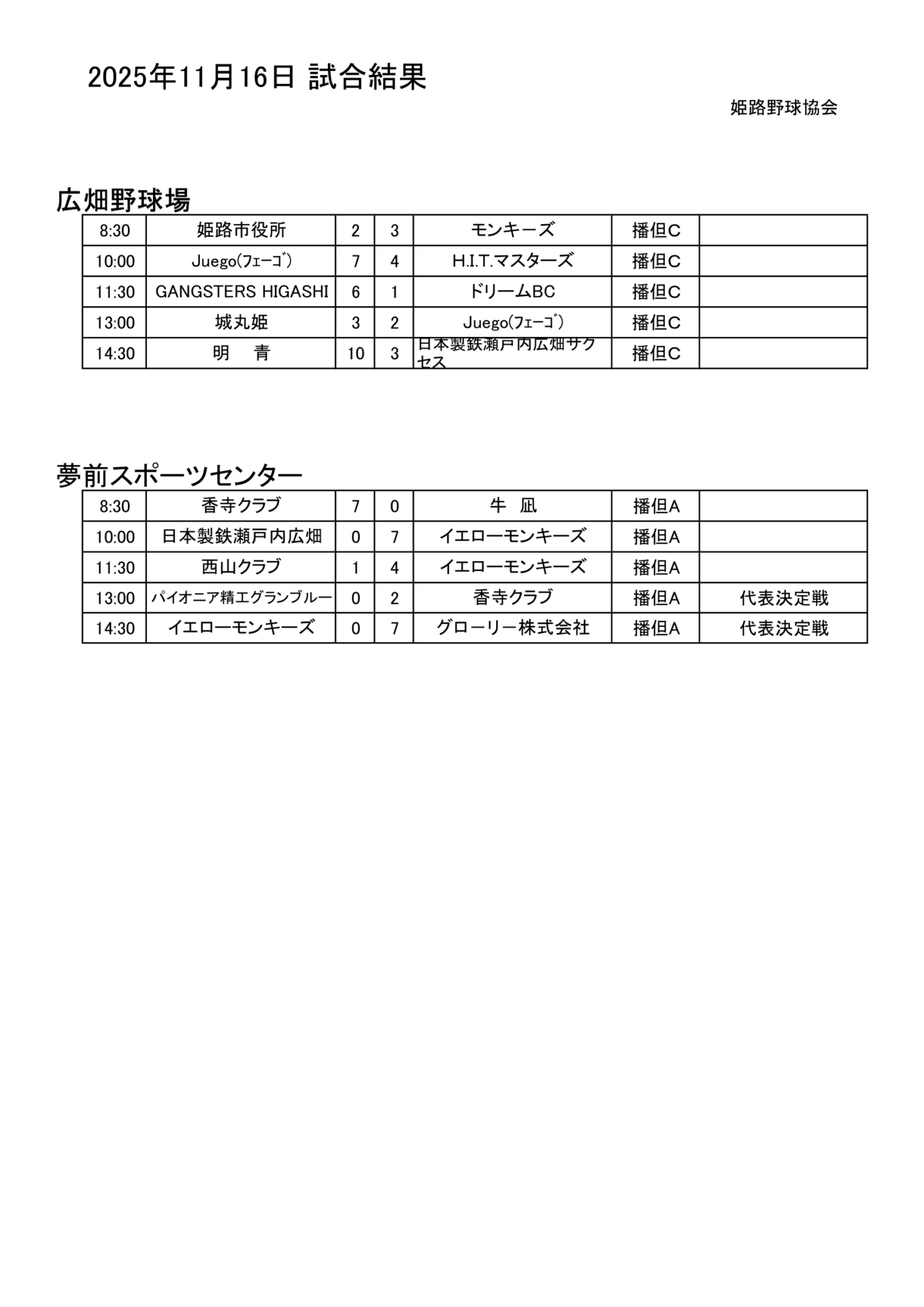 姫路野球協会は、全日本軟式野球連盟に所属する野球協会です。