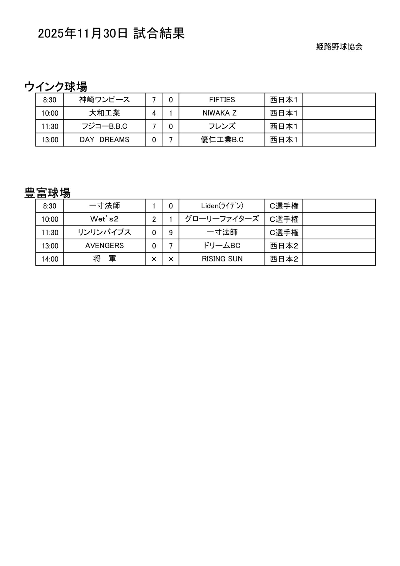 2025年11月24日(月祝)試合結果
