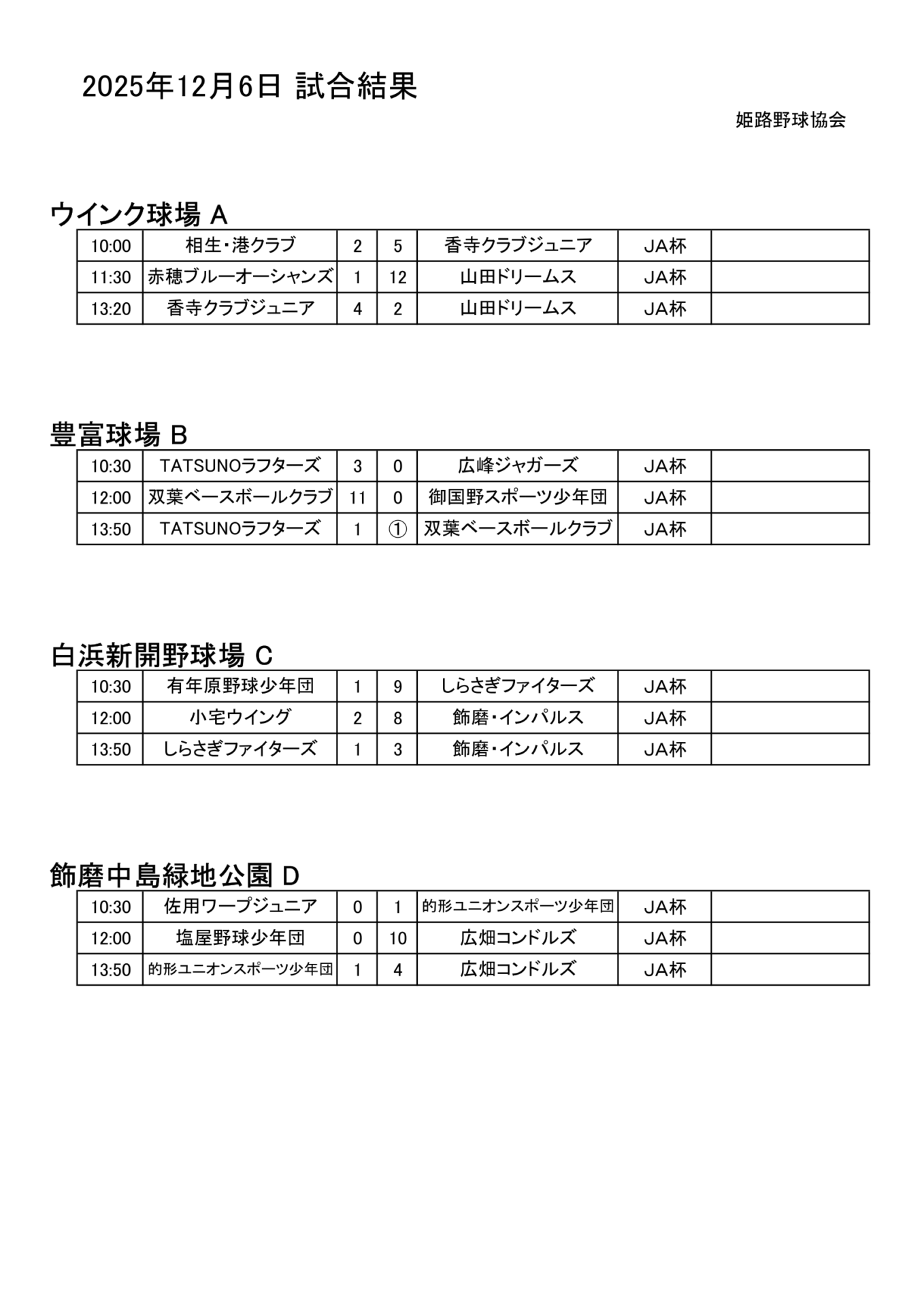 姫路野球協会は、全日本軟式野球連盟に所属する野球協会です。