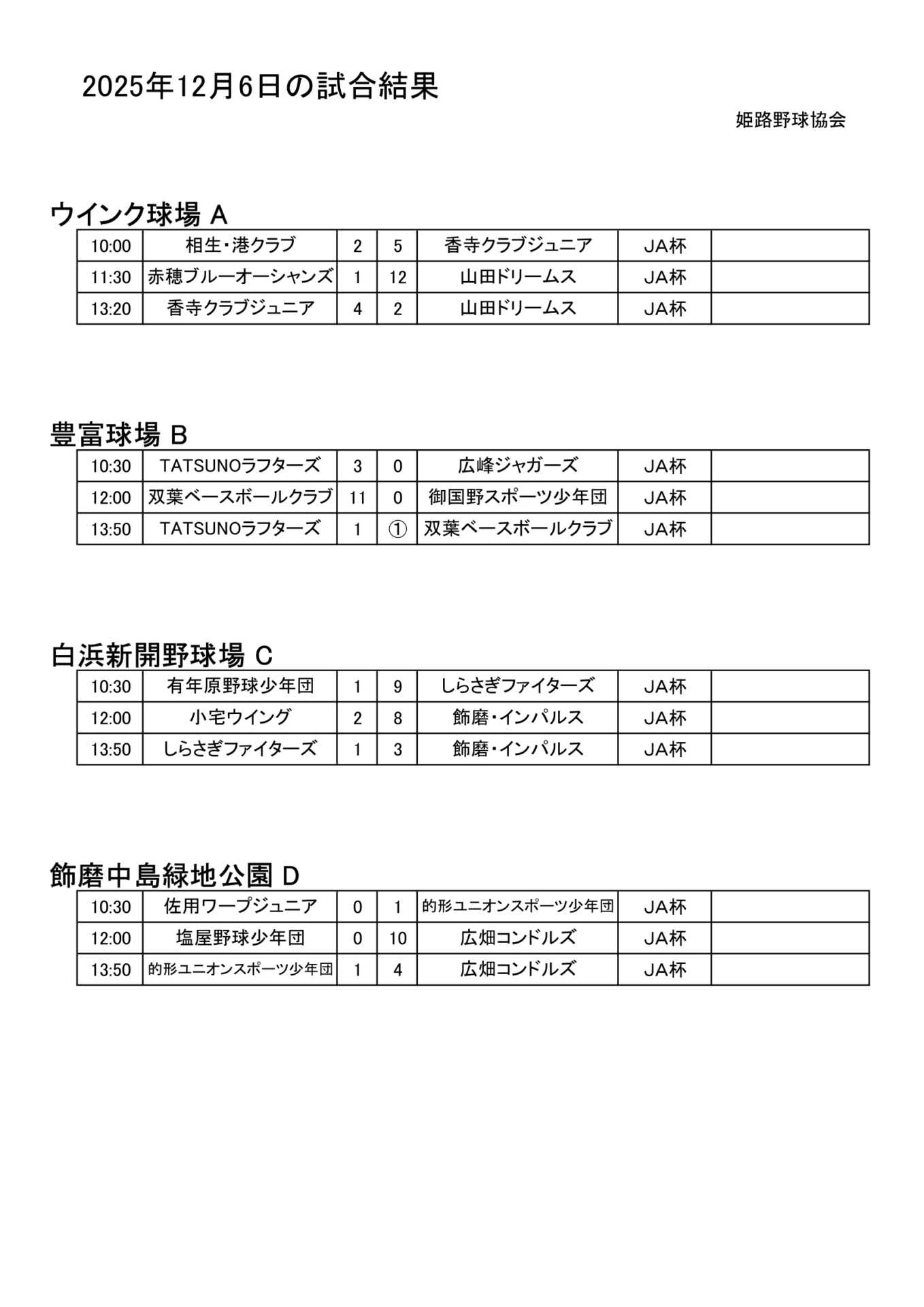 2025年12月6日(土)試合結果