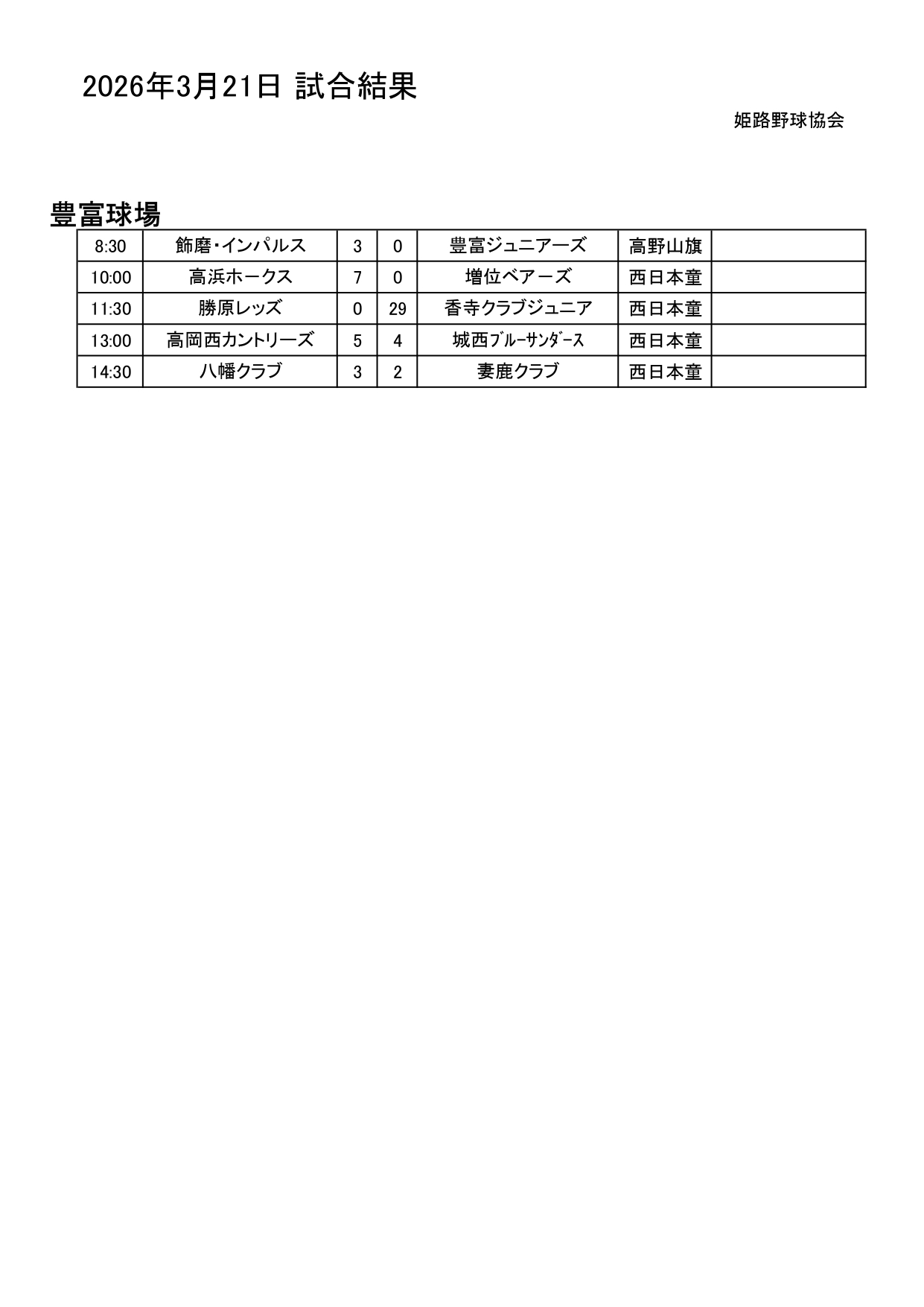 2026年3月21日(土)試合結果