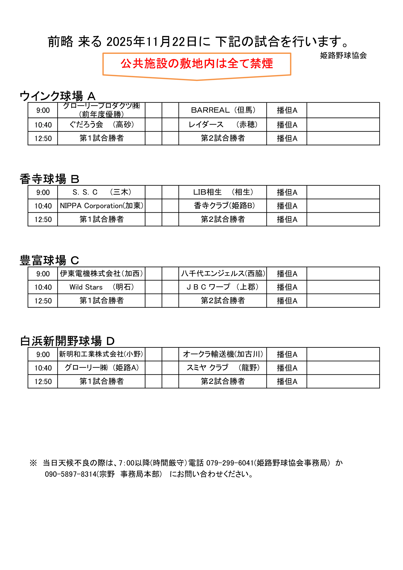 姫路野球協会は、全日本軟式野球連盟に所属する野球協会です。