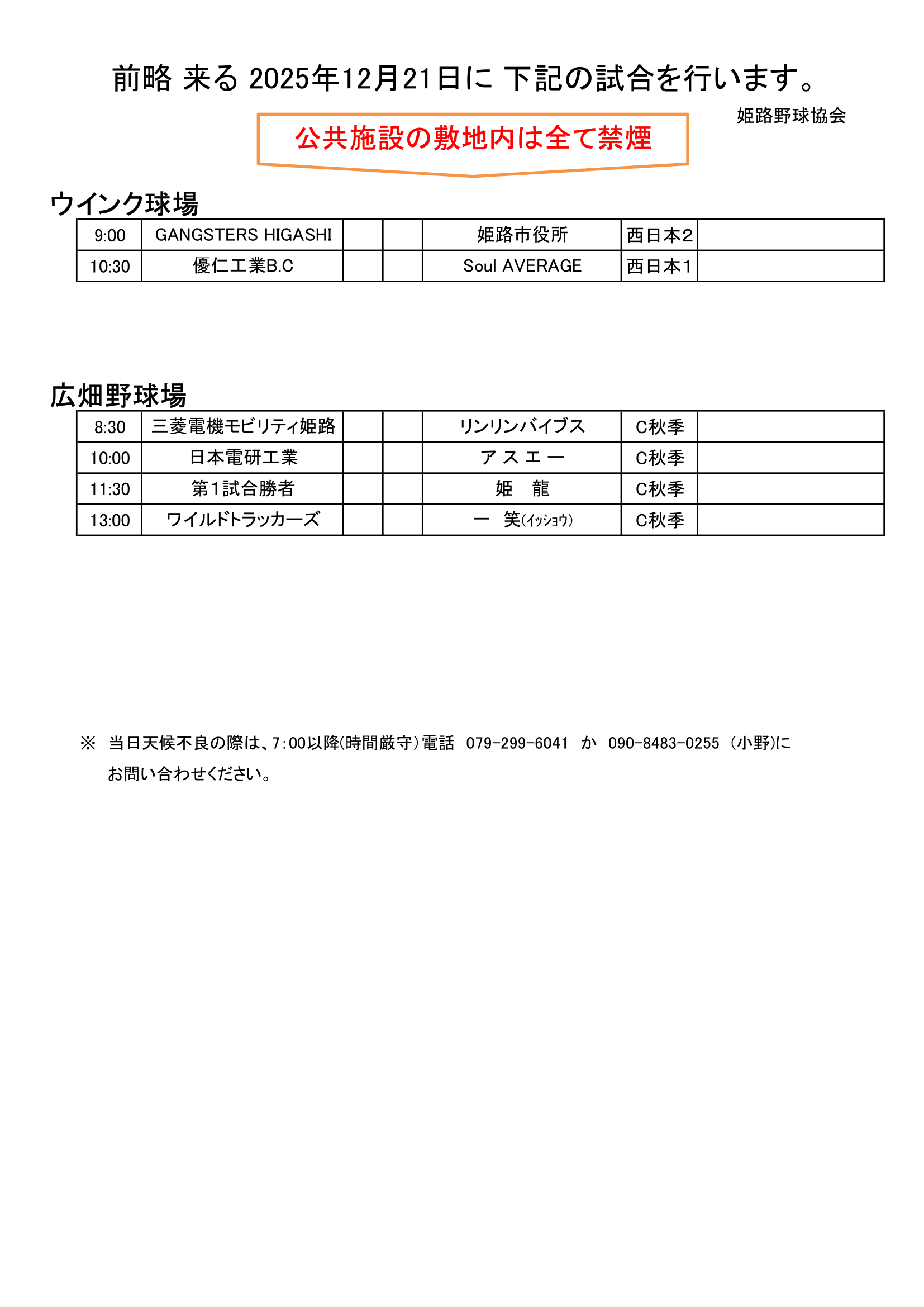 2025年12月20日(土)試合予定
