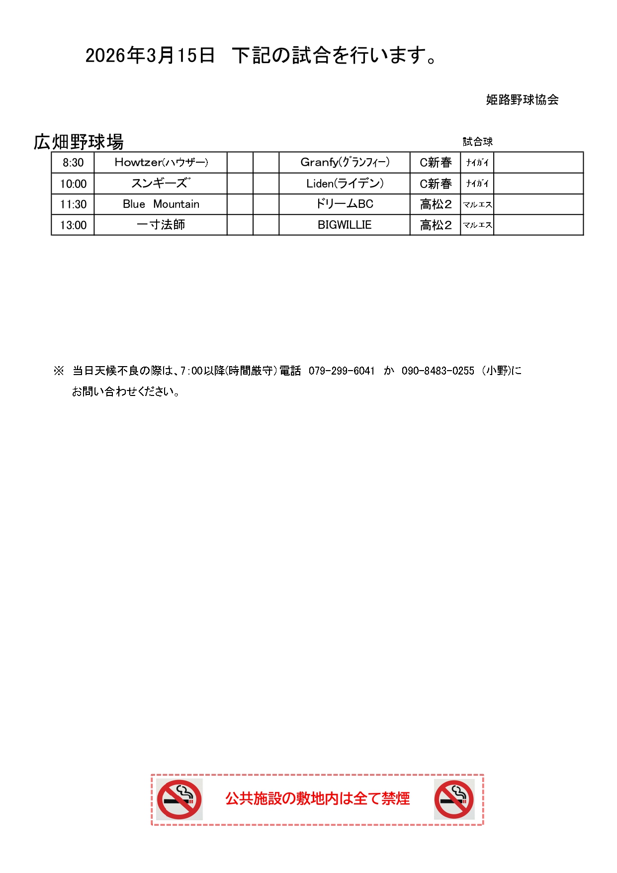 2026年3月20日(金祝)試合予定